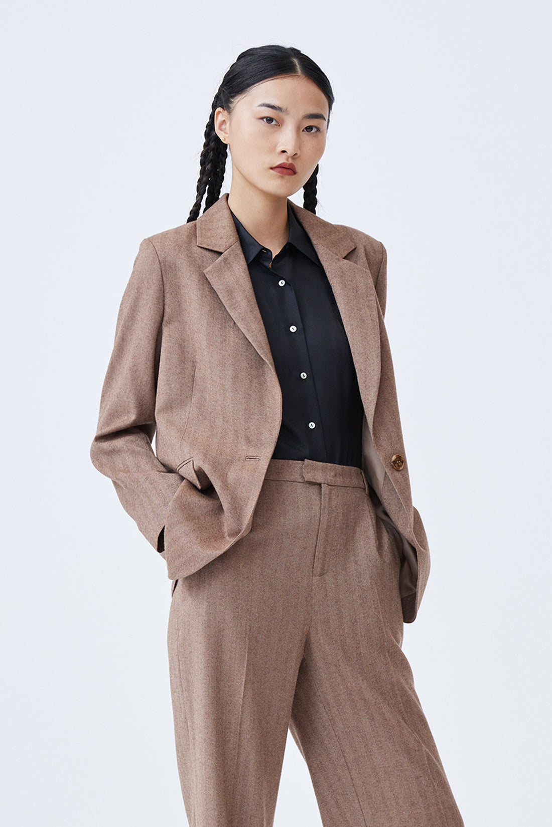 Blended with 90% cashmere and 10% silk, with herrington-pattern and a lapel collar, front double-breasted...