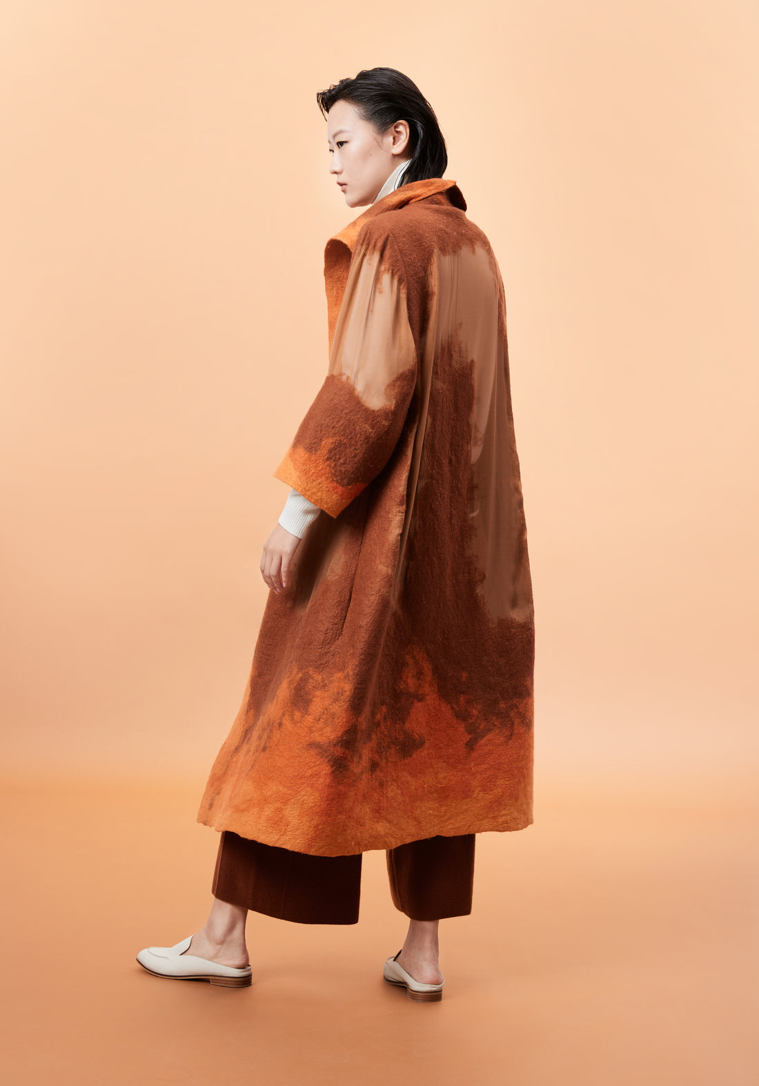 Unique handfracted felt coat joint with 100% cashmere and pure silk, an artwork by Mongolian...
