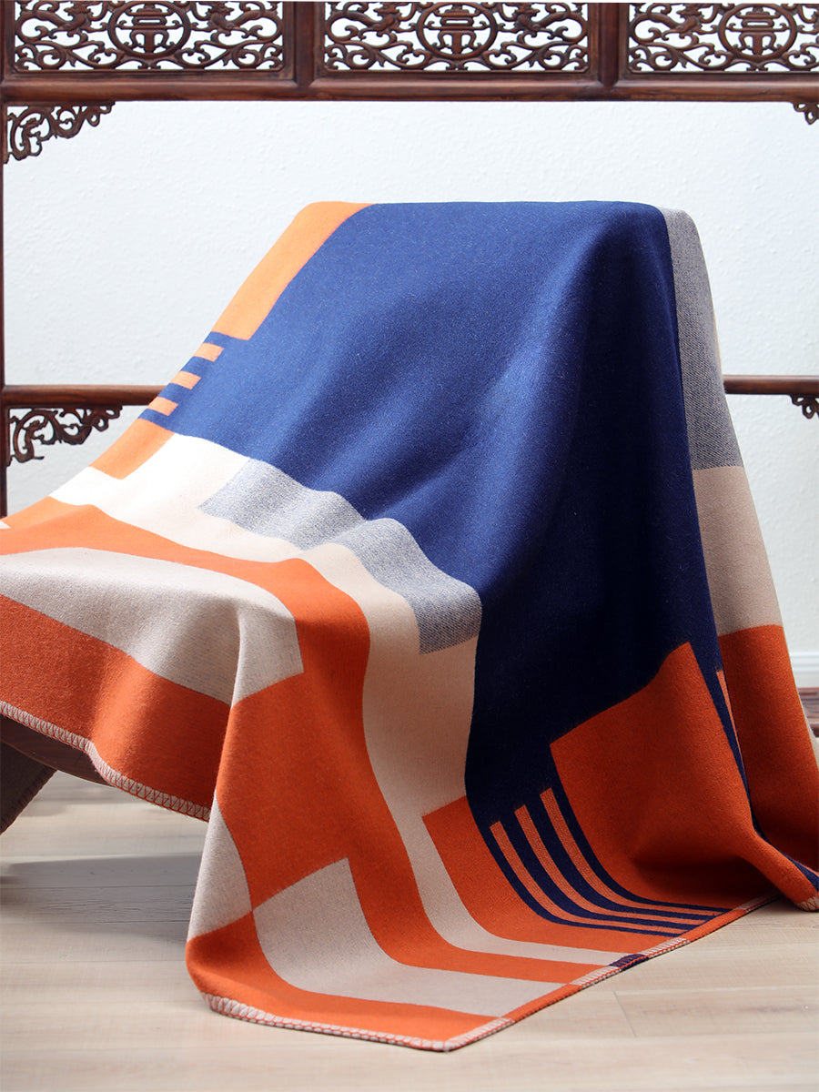 Wrap yourself in the warmth and elegance of this reversible cashmere throw. Crafted from the finest cashmere, it features a stunning jacquard pattern in vibrant shades of orange. The soft and luxurious feel of the cashmere, combined with the intricate design, makes this thow a timeless piece.
