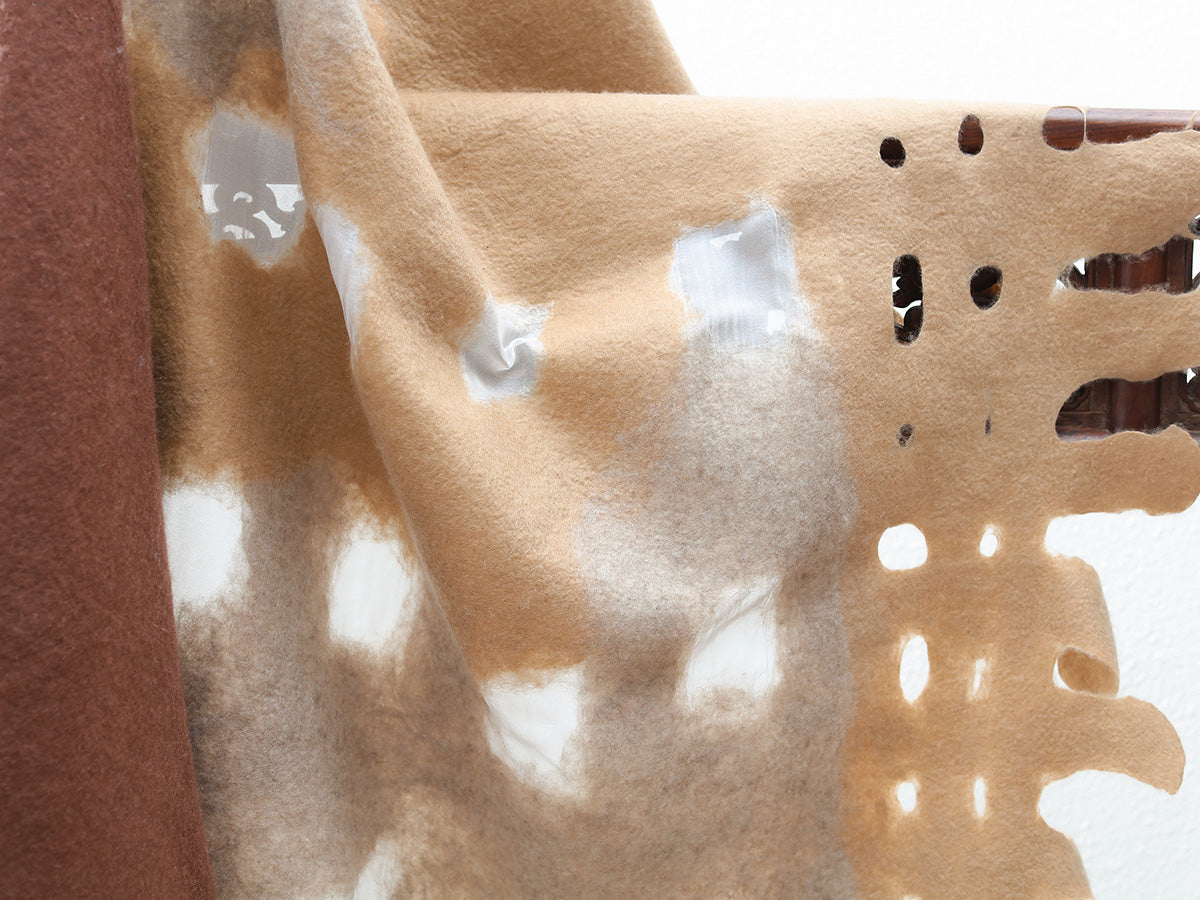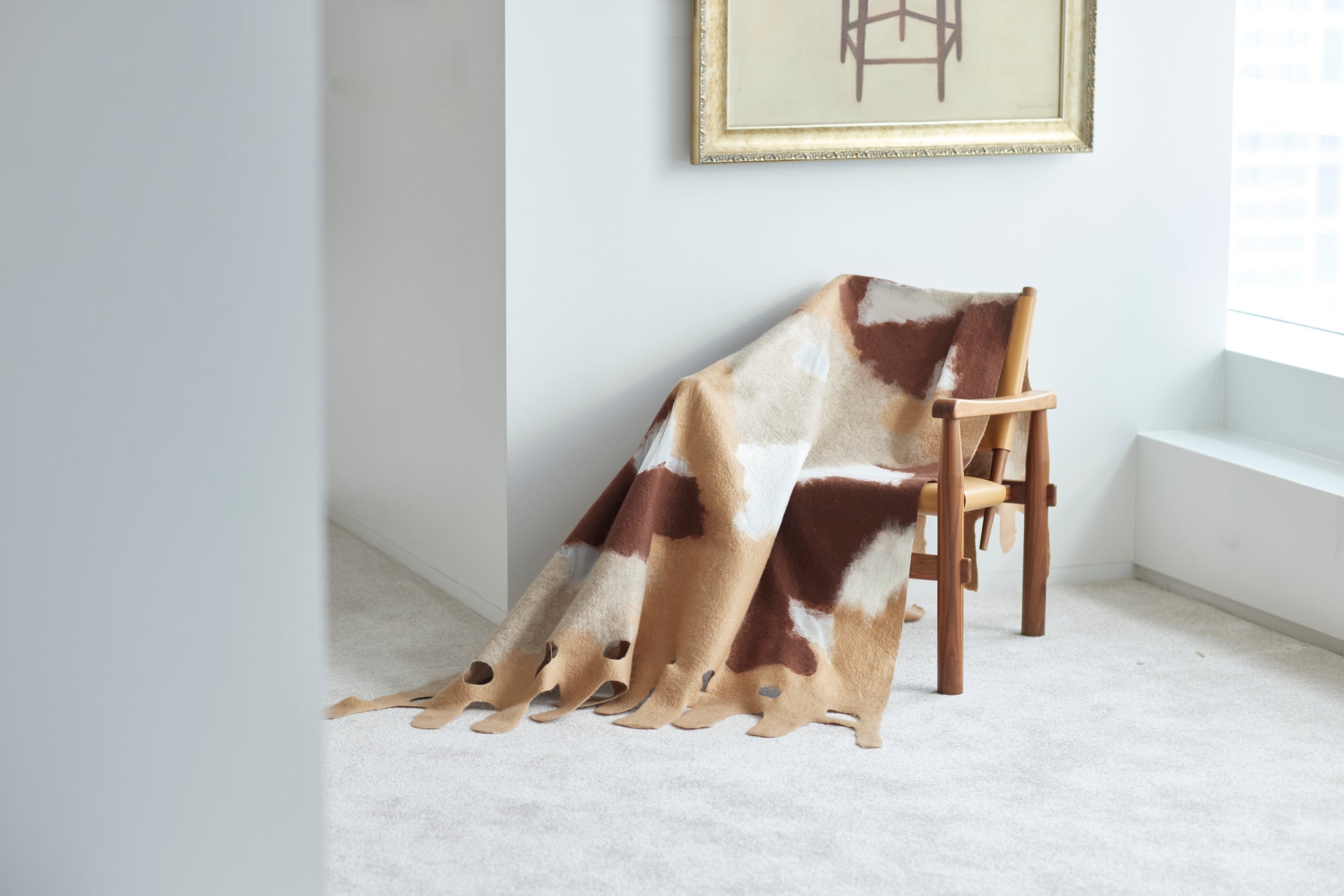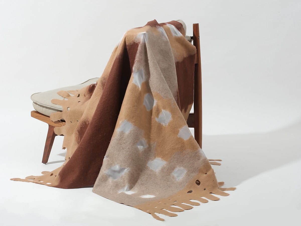 A beautifully textured throw, hand-felted from a sumptuous cashmere with a base of silk, showcasing the artistry of traditional felt-making.