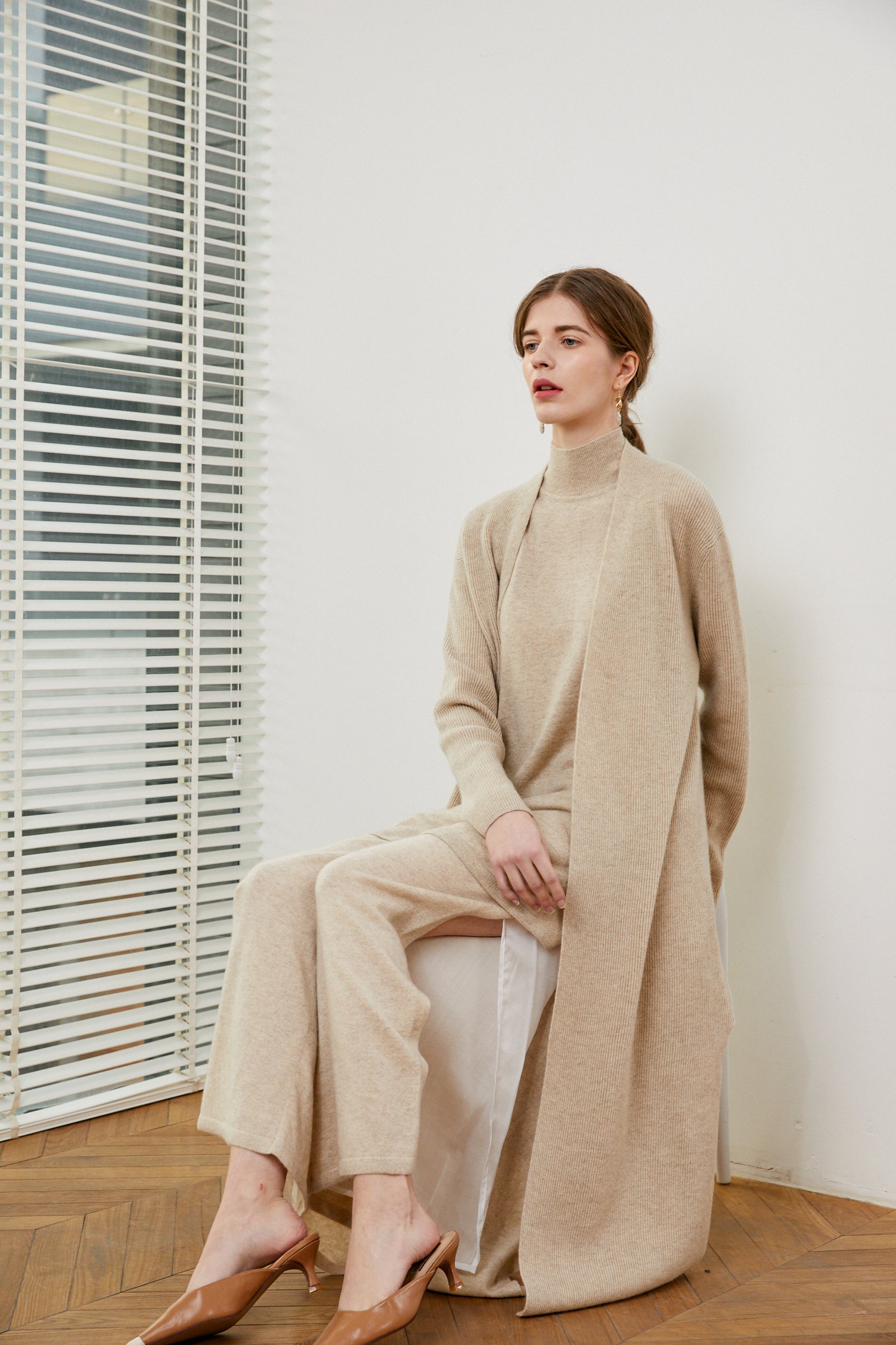 Cashmere pants knitted by pure cashmere from Inner Mongolian family-owned pasture. Extremely skin-friendly with feather-light material, this piece is comfortable to bring on a trip or at home.