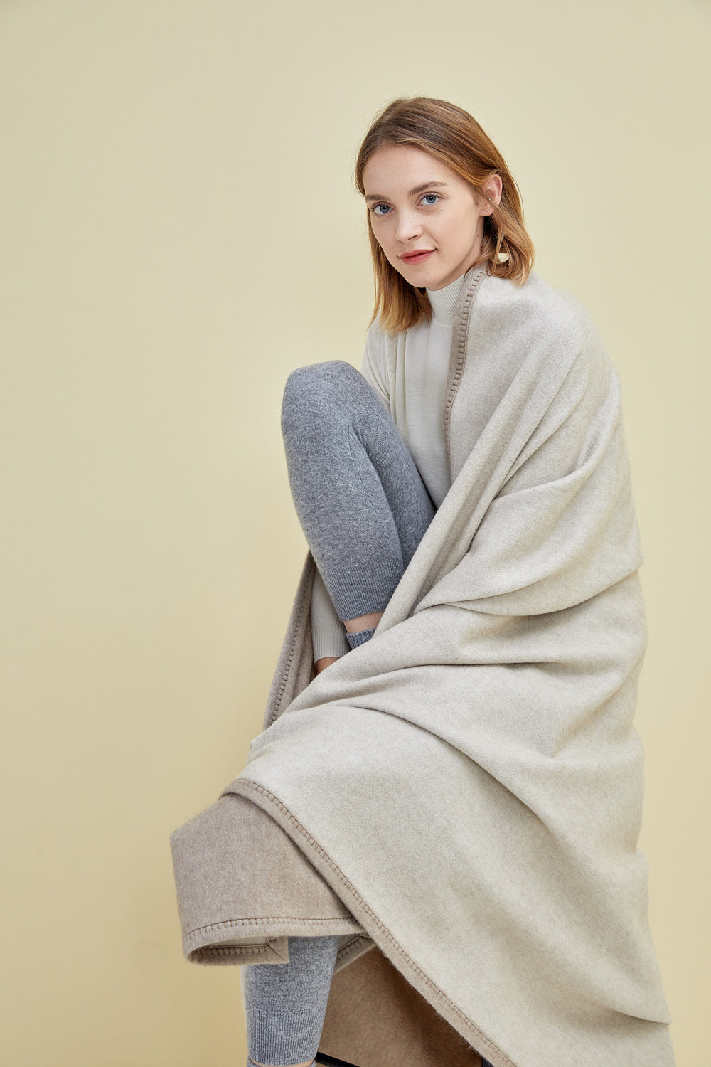 Un-dyed double-face blanket with trim