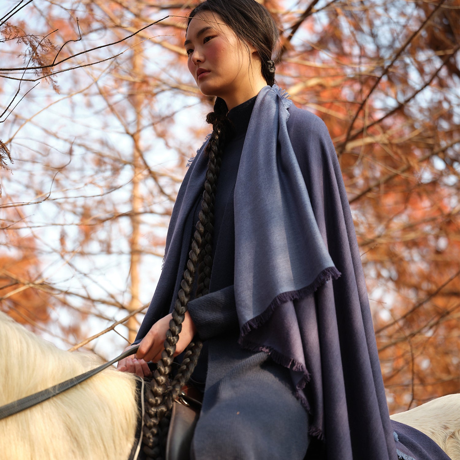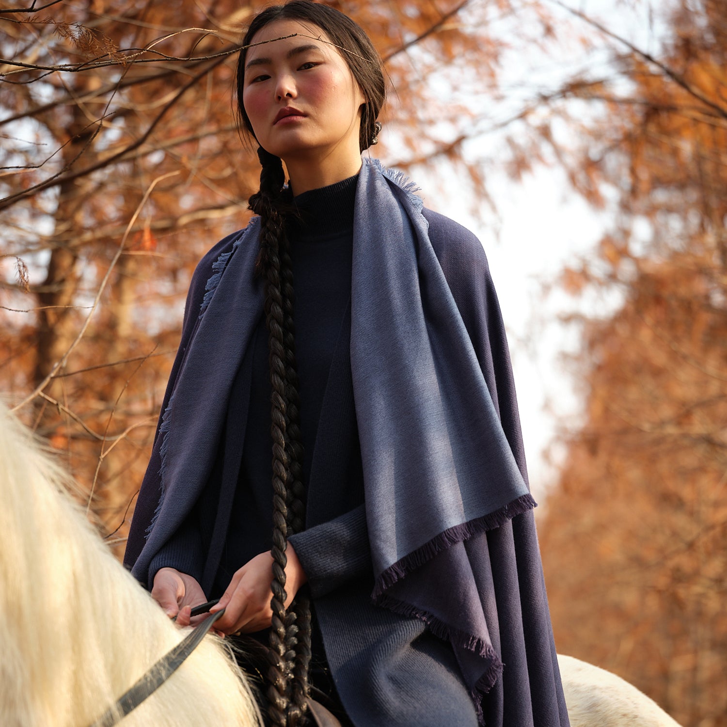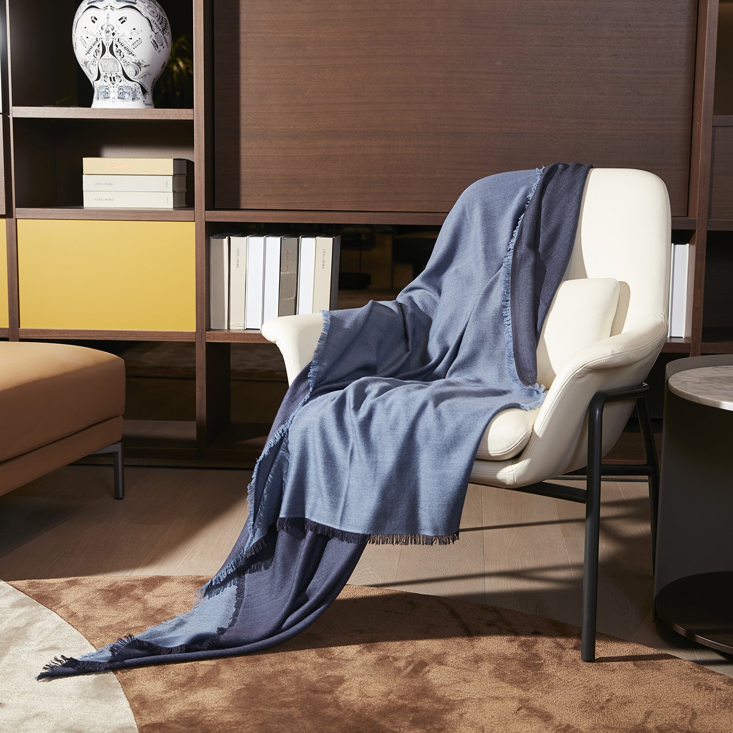 This double-sided cashmere throw is extremely soft and skin-friendly. The raw material is sourcing from family-owned pasture in Inner Mongolia and manufactured in a self-owned factory in Shanghai.