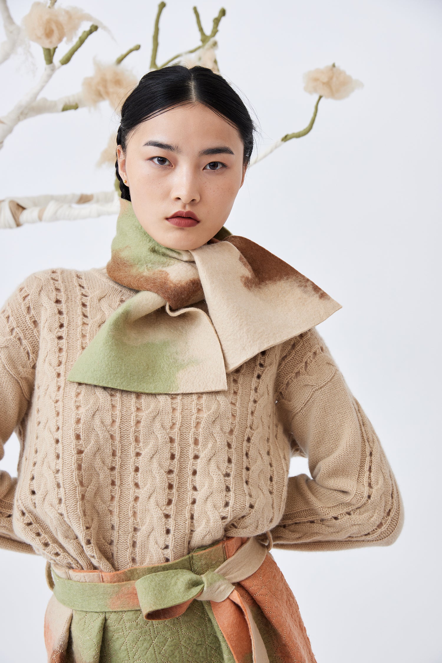 Unique traditional Mongolian handcrafted cashmere felt short scarf. Easy to be shaped. Multi-colored raw material all collected from the production of other ready-to-wear items, part of the sustainable fashion project of Sandriver.