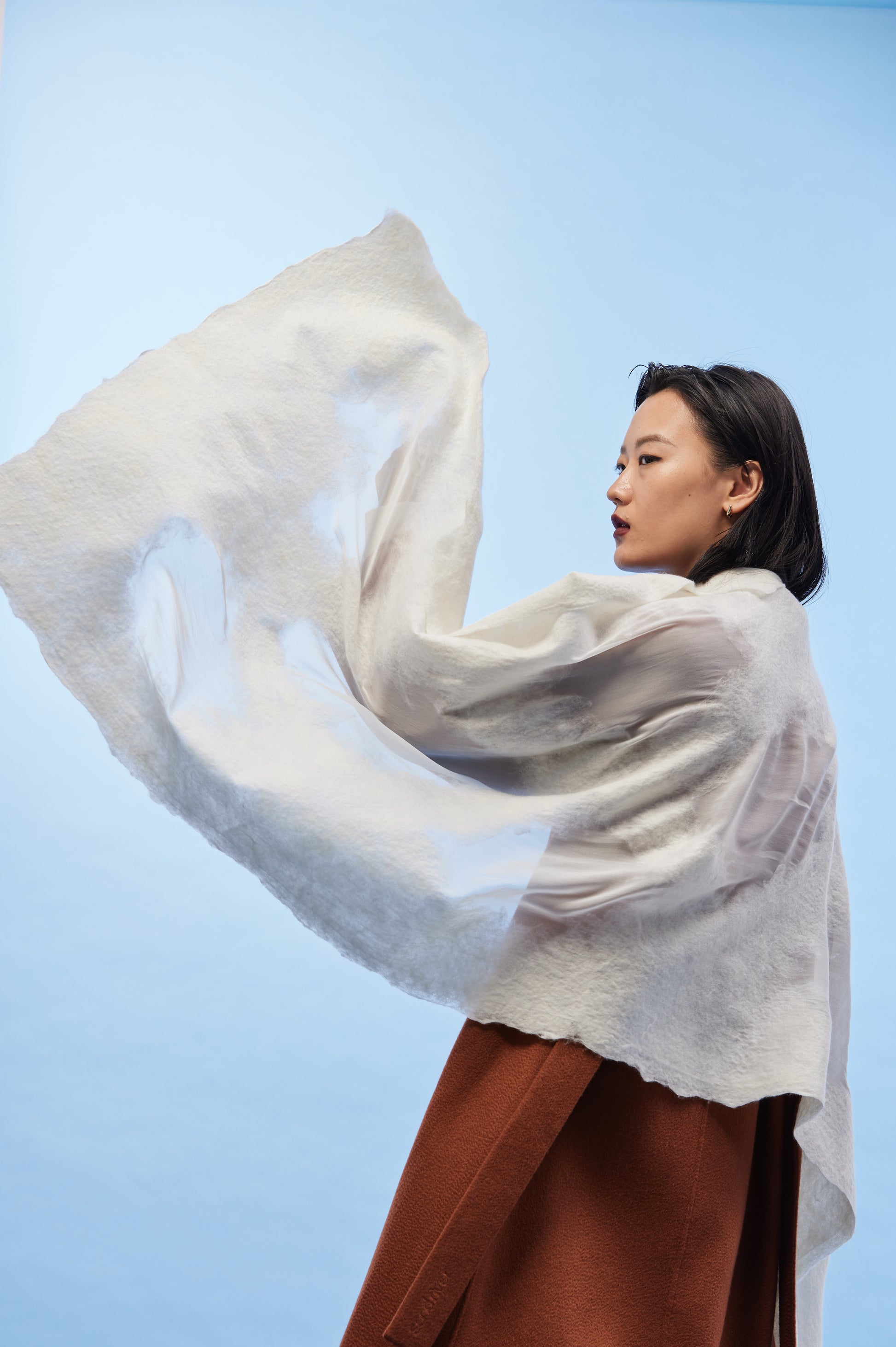 Unique traditional Mongolian handcrafted felt shawl joint with 100% cashmere and pure silk, rhombic pattern.