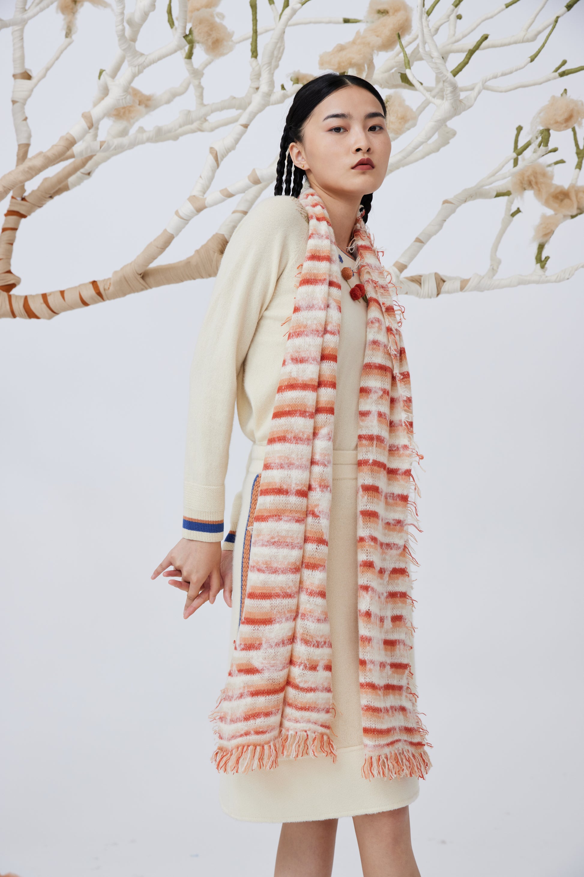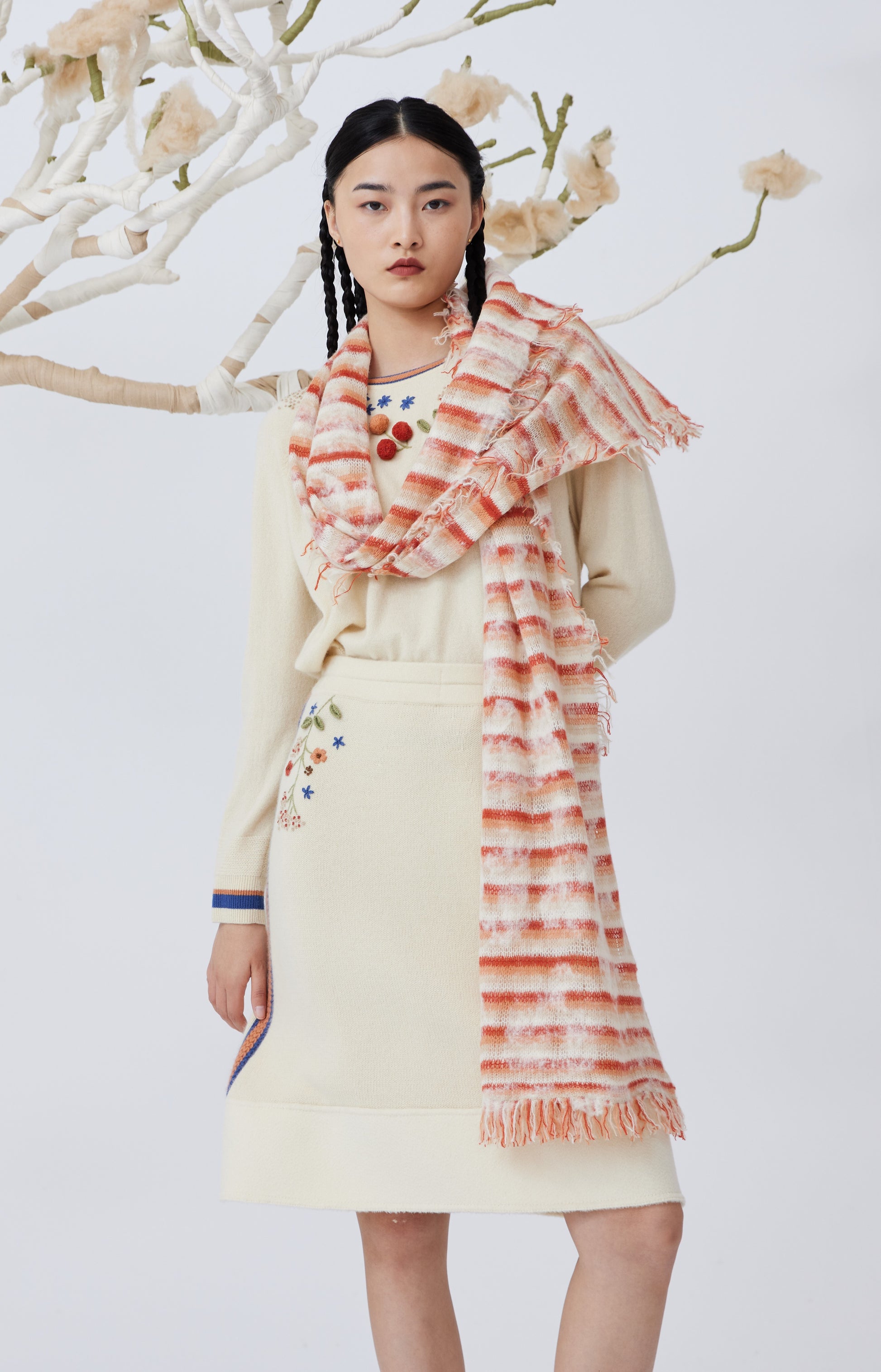 Unique traditional Mongolian handcrafted felting scarf on knitted base, hand-made tasseled edge, and a light weight, 100% cashmere.