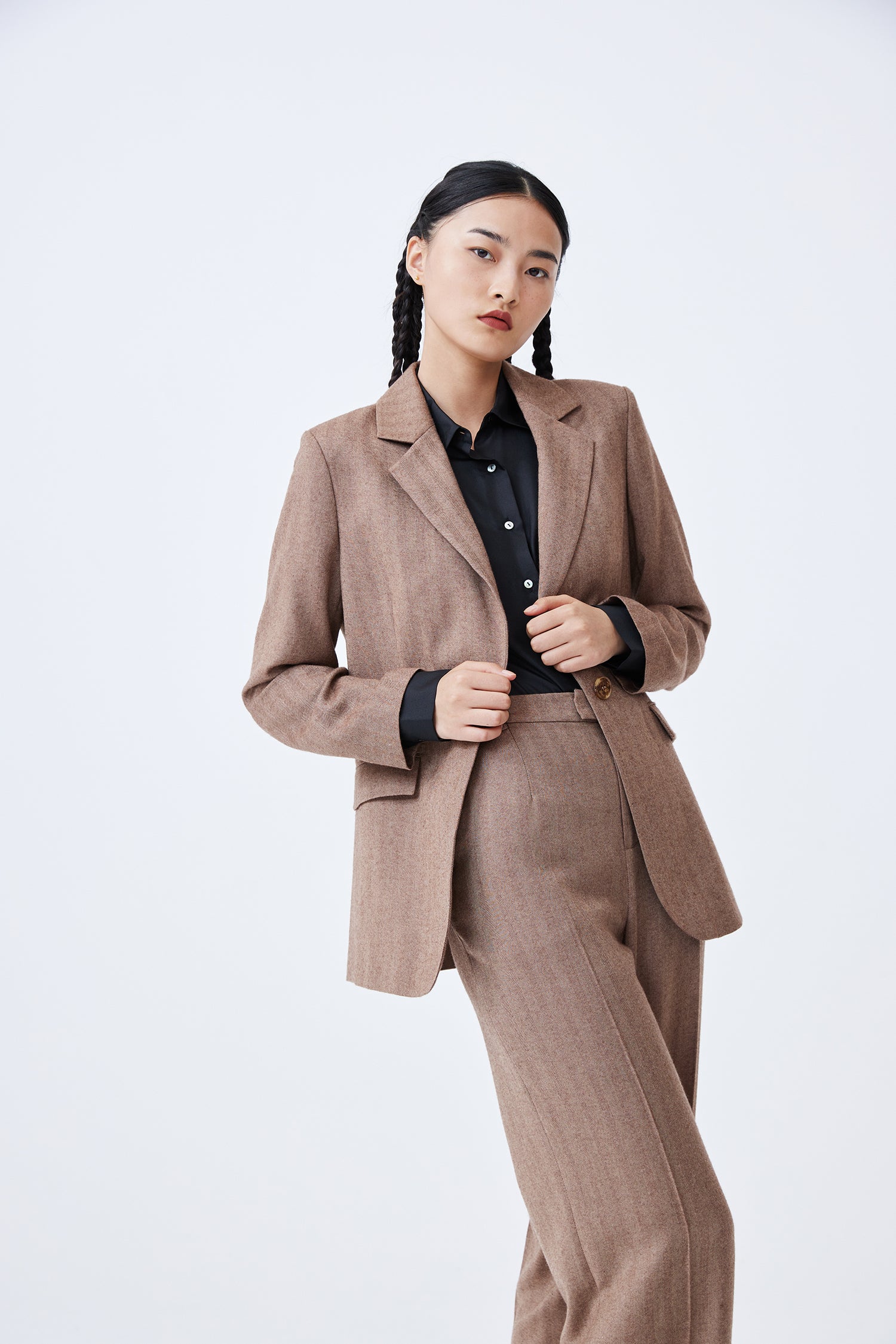 Pure cashmere herrington blazer with one-button fastening. Long-sleeves and flap patch pockets.