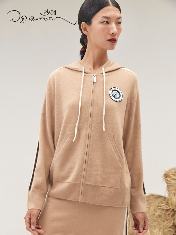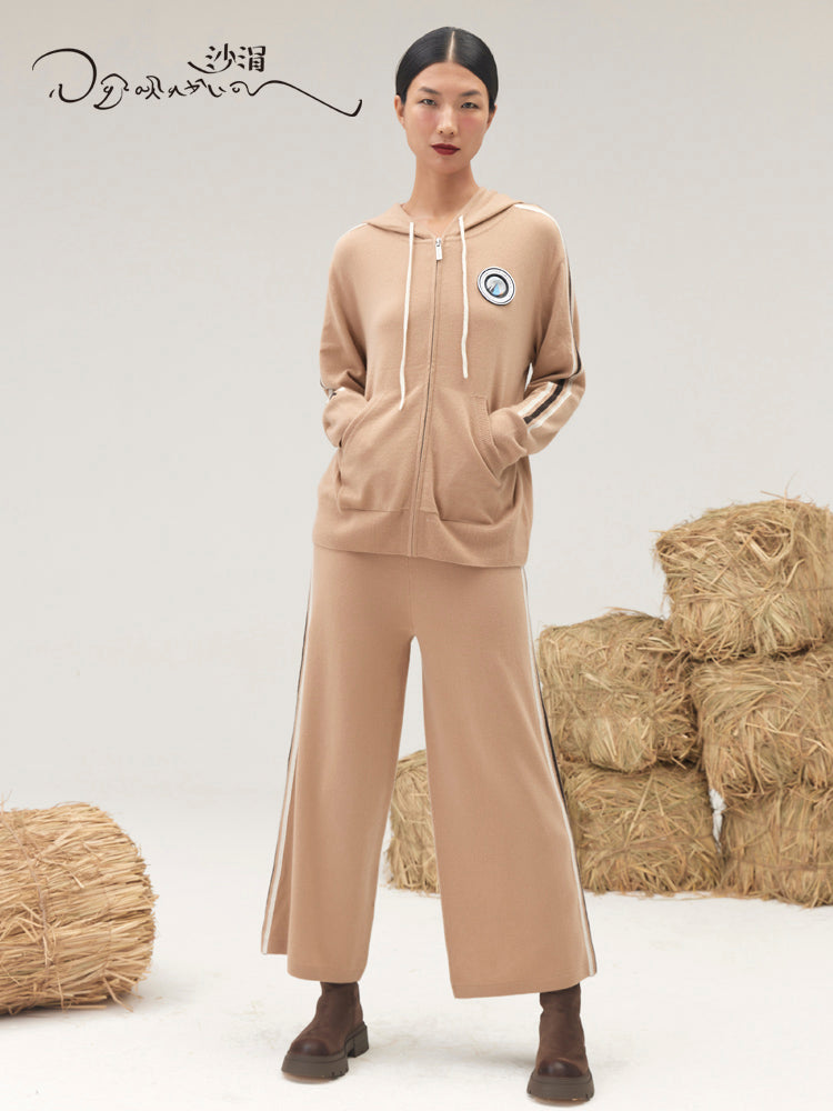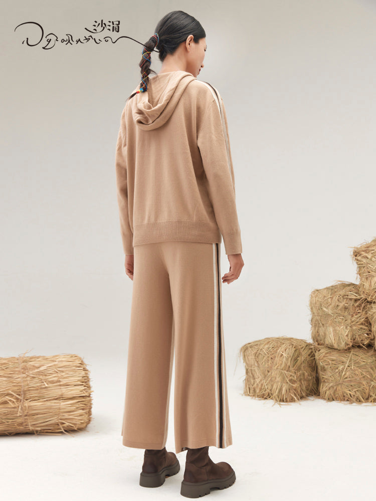Sporty leisure cashmere hoodie / Wide-leg cashmere
