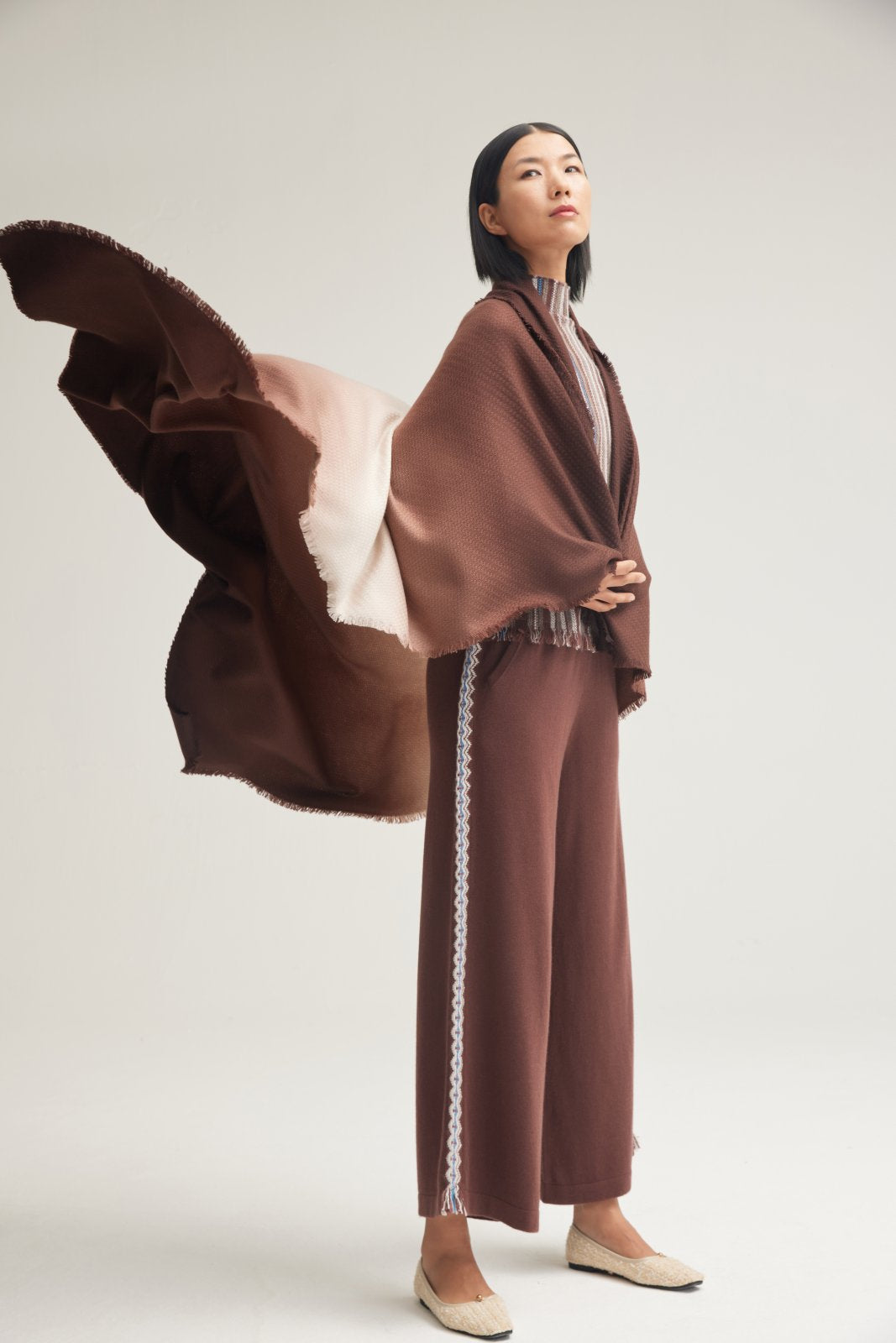 A large handmade cashmere blanket crafted using Tibetan traditional technology. This blanket features a two-color dyeing design with an environmental protection process, resulting in a natural color transition.