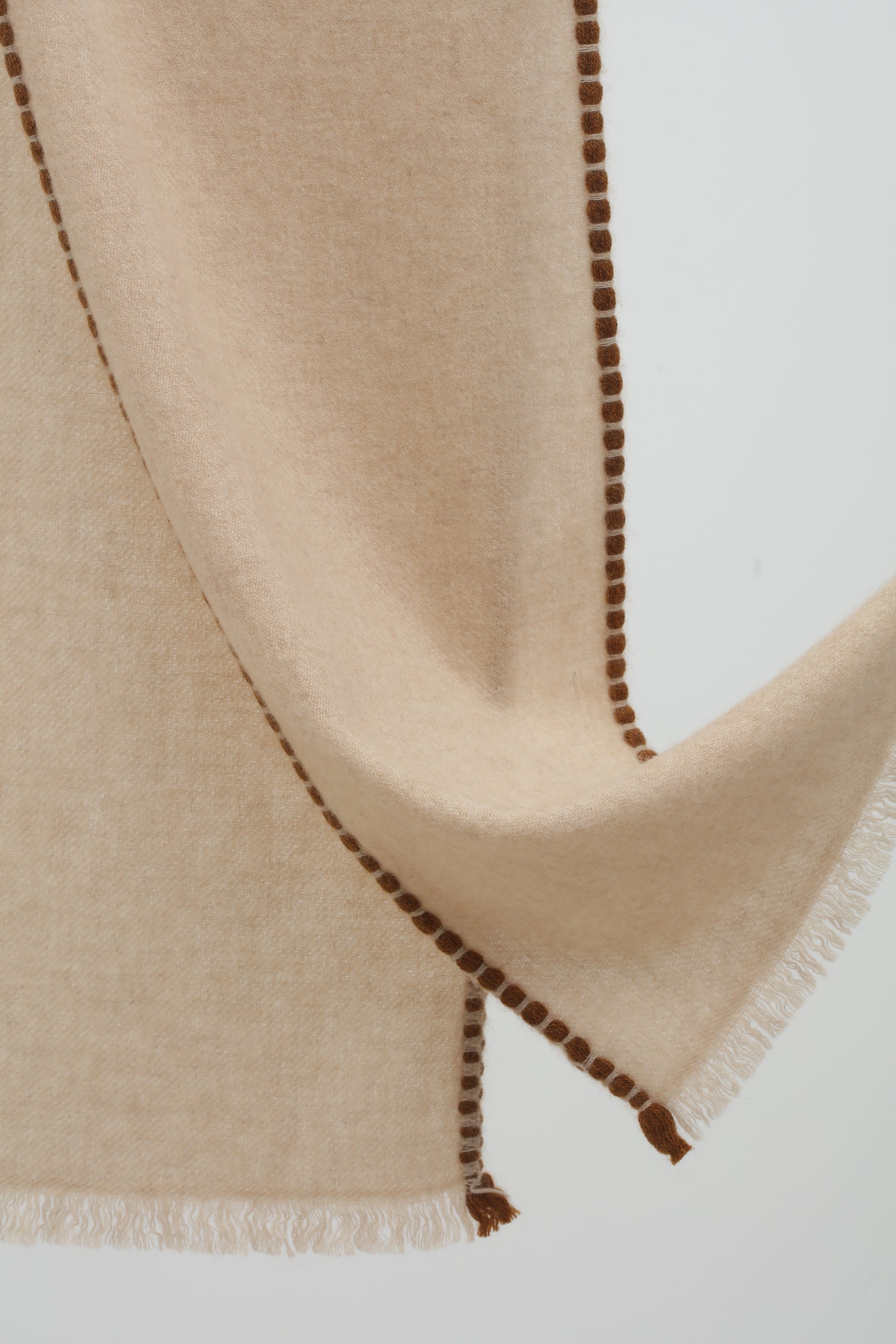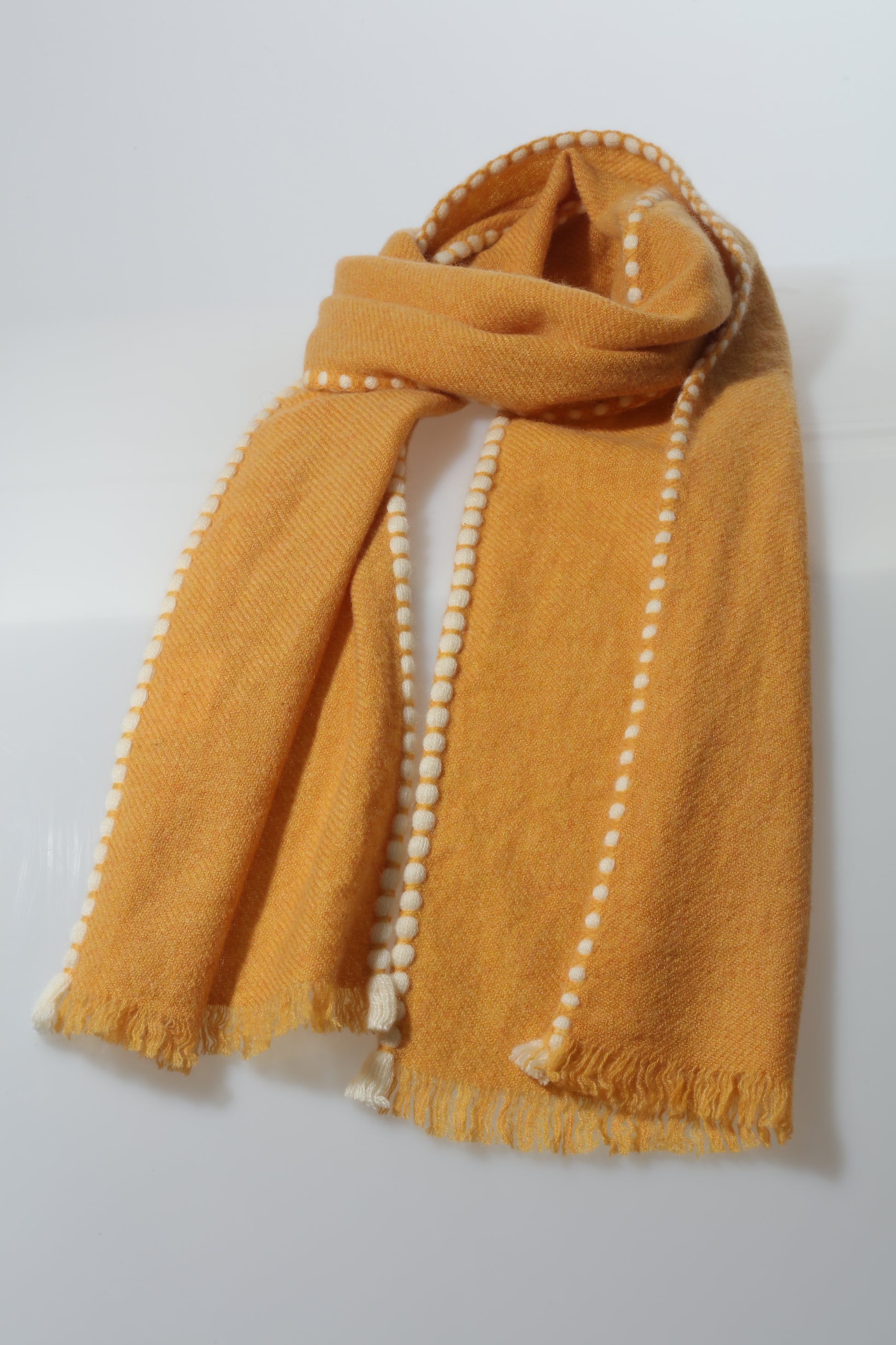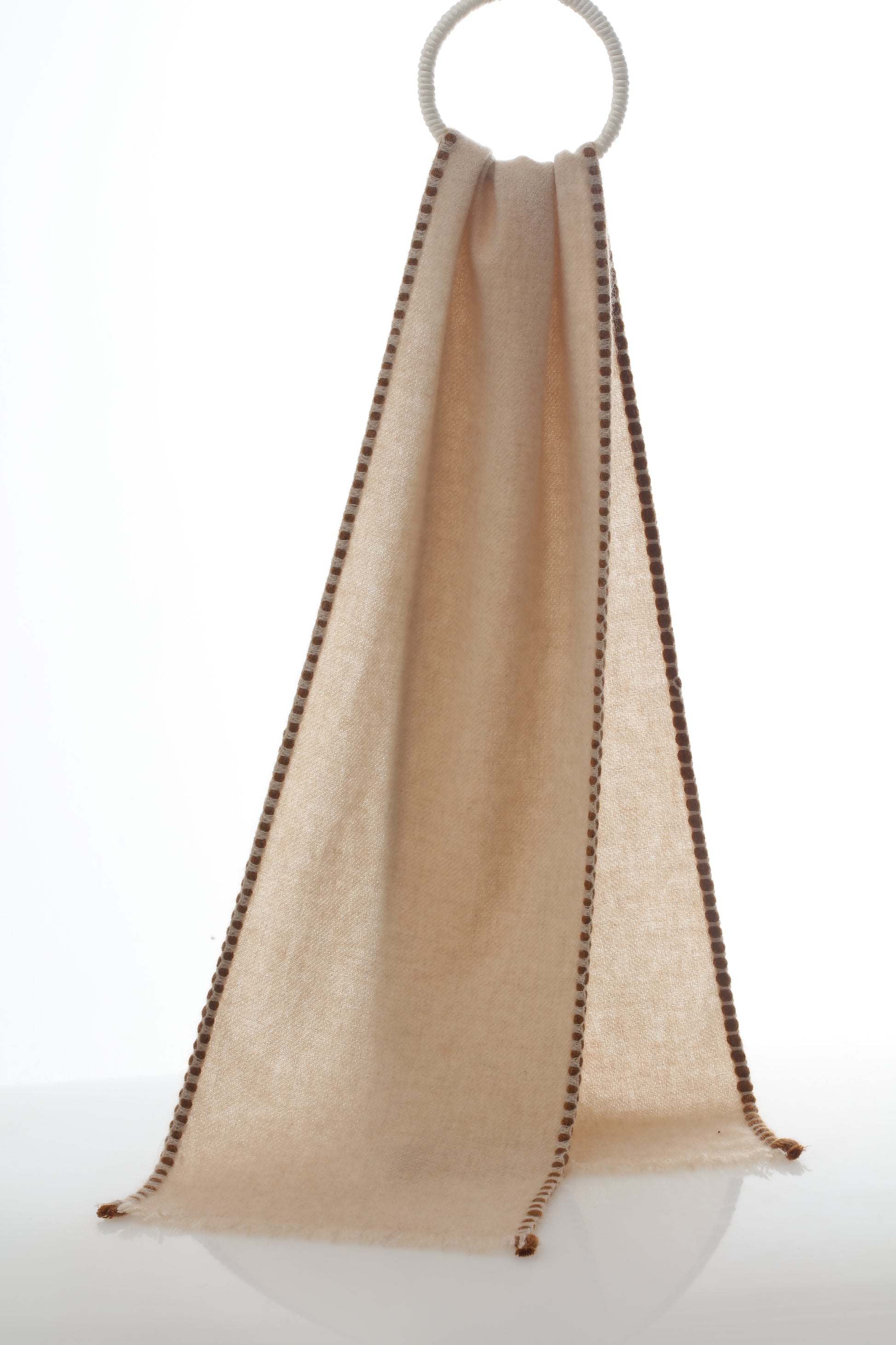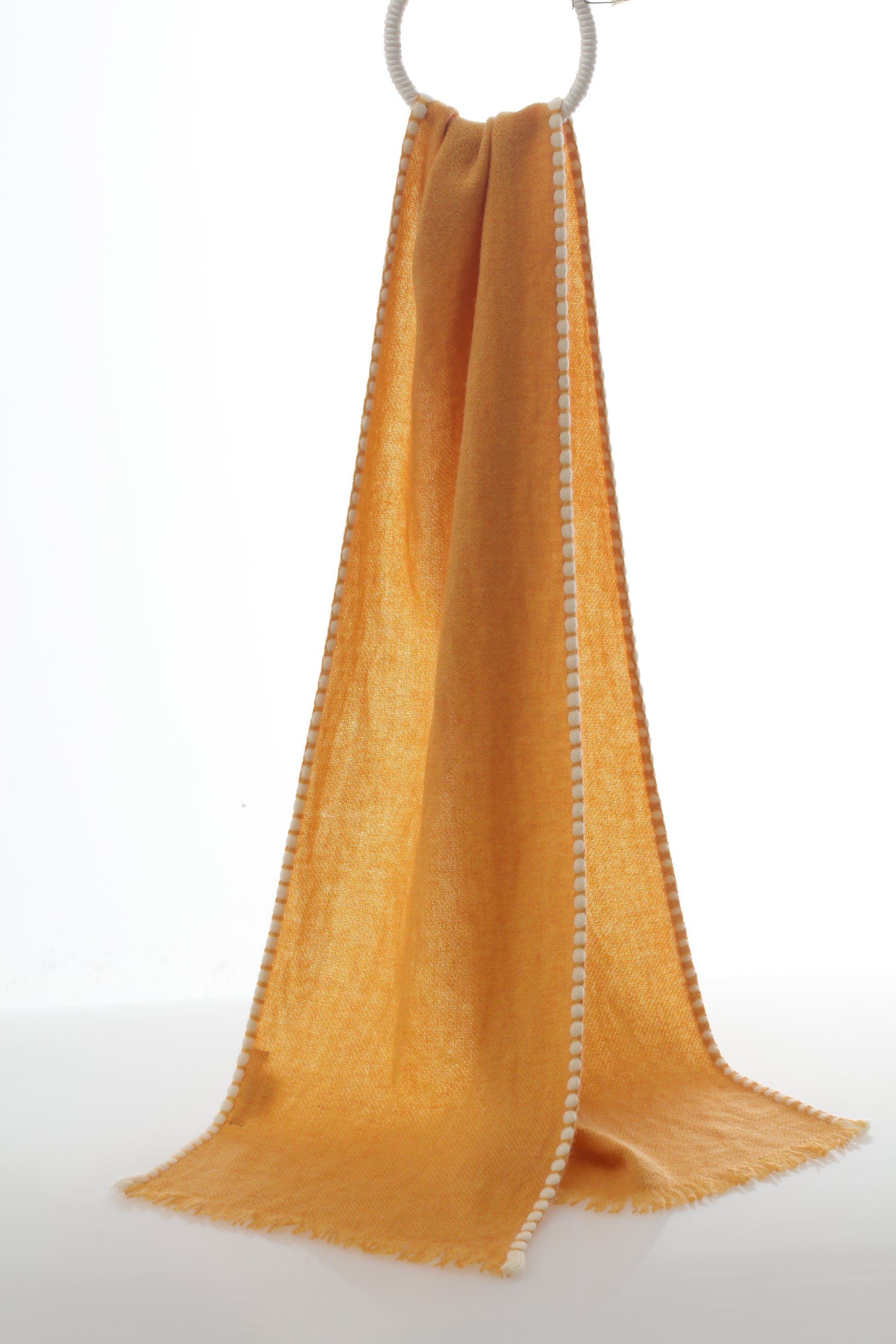 The hand-woven scarf, originating from an ancient tibet handcraft technique, 100% cashmere, dip dye design.