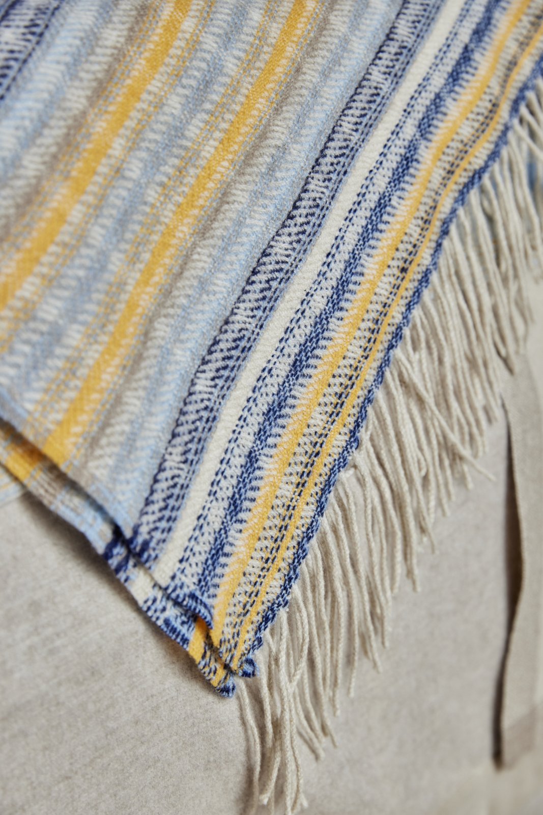 Traditional technology handmade natural cashmere throw from Tibet. This large size throw features handmade tassels and stripe pattern is designed to resist the high altitude cold, providing excellent warmth. adhere to using natural, environmentally friendly cashmere that is non-dyed and free of additives.