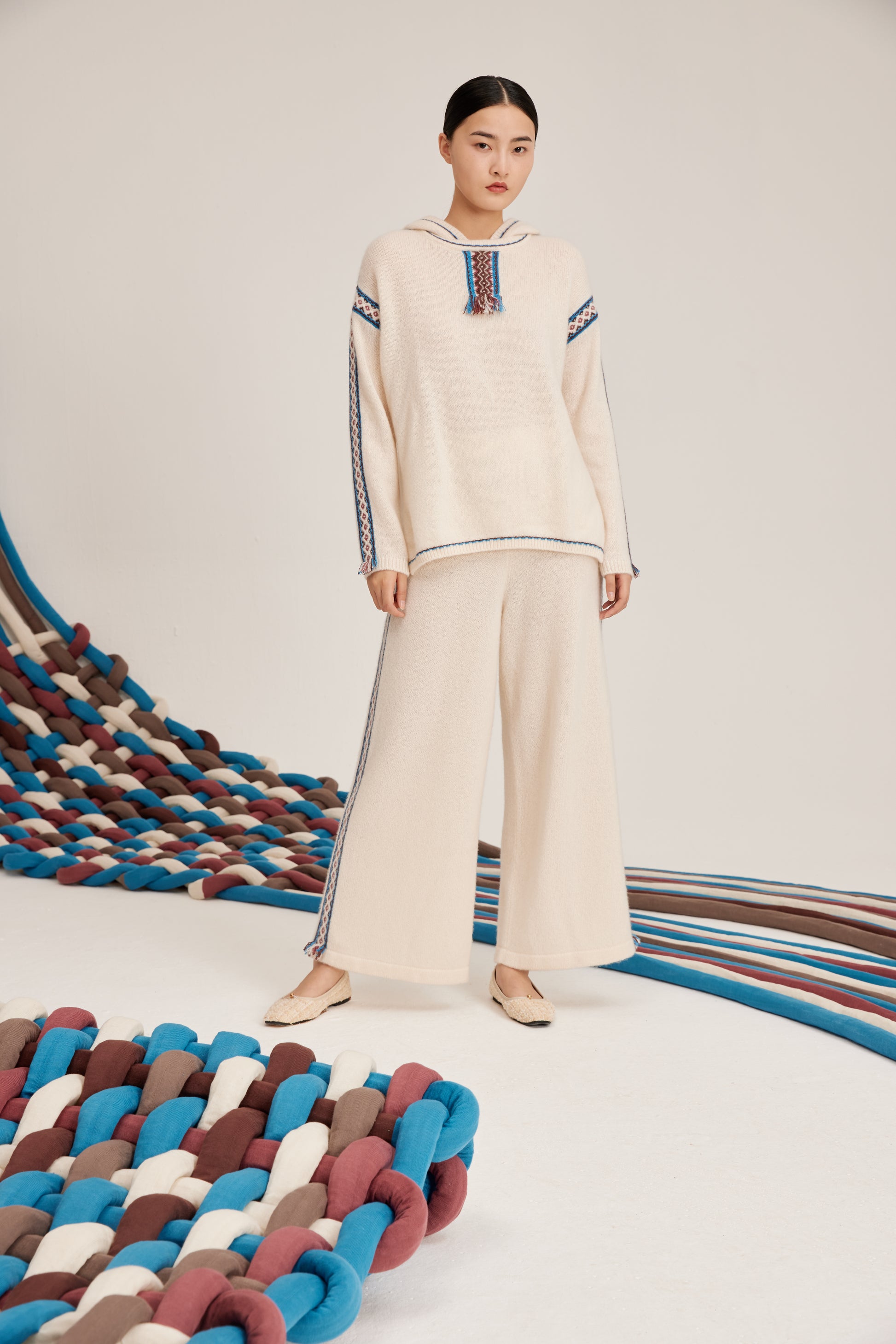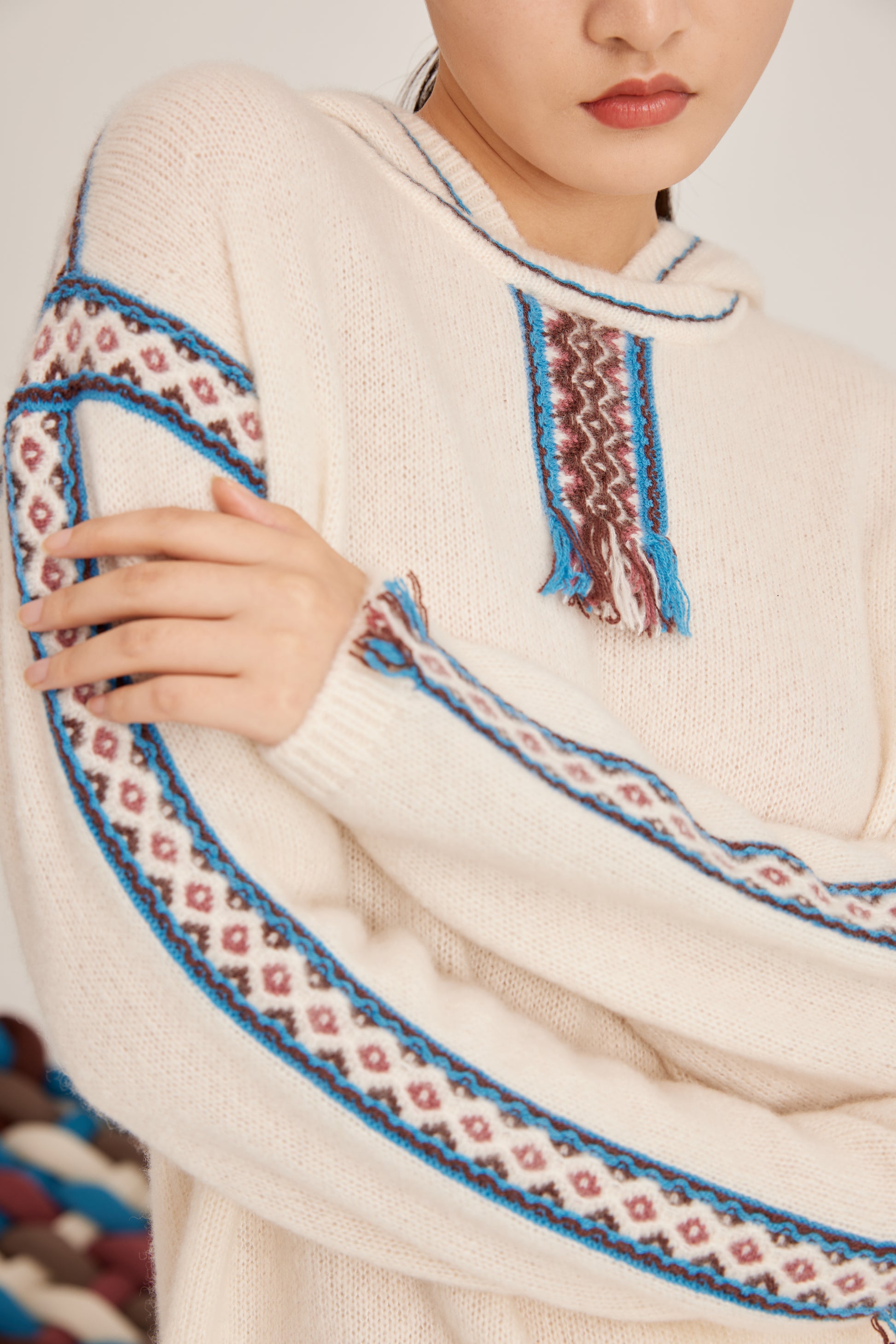 Silk-cashmere ribbed hoodie featuring tassels, balanced blend of selected superfine cashmere and luxurious pure silk, a soft and delicate touch.