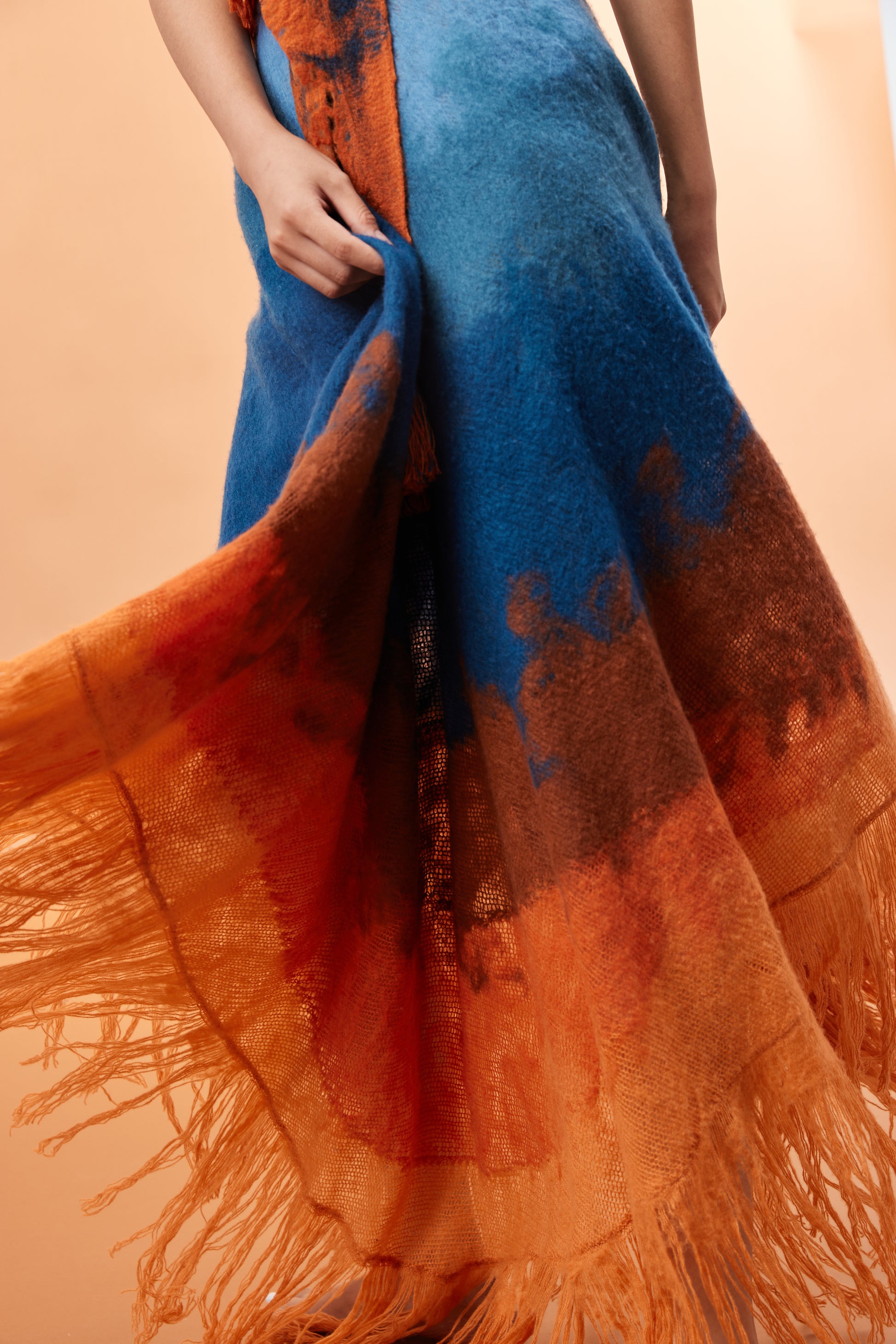 Unique traditional Mongolian handcrafted felt, 100% cashmere knitted skirt, assorted with multi-color blocks, handmade tasseled edge.