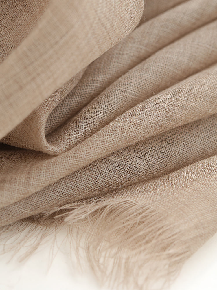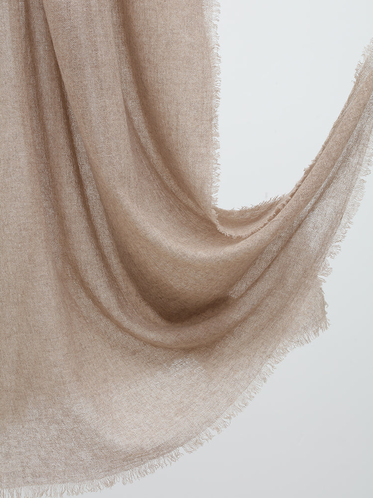 Simple solid-color design that highlights the sheen and texture of cashmere. Features even-length tassels with optimal drape, creating a rhythmic movement when in motion.